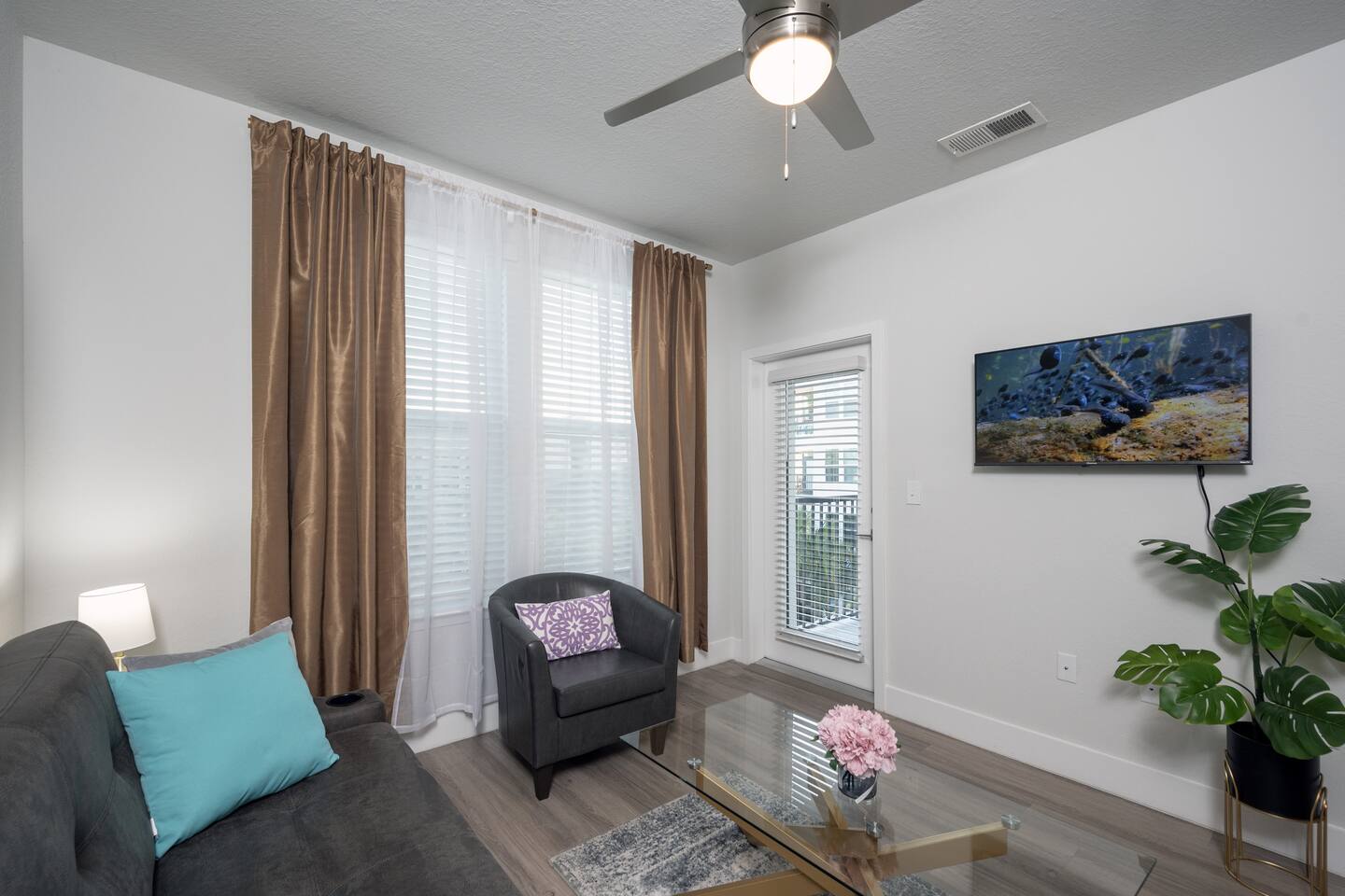 🌟 Follow us @FurnishedStaysTampa 🌟 🌟 Check out IG for more photos and videos: @FurnishedStaysTampa ✨ "...the worst part was having to leave this dream place..." This 1BR/1BA resort feel space is amazing. Amenities and services you’ll love: 🎗️ Luggage storage available 🎗️ During check-in, get Damage insurance to avoid a security deposit. 🎗️ Special rates start at 7+ nights 📅 Monthly stays OK ☞ One-night stays; see restrictions in house rules ☞ Fully stocked and equipped 🐈 Pet friendly ☞ Fenced pet park + pet spa! ☞ New construction (opened May 2022) 🔑 Smart lock key-less entry for seamless check-ins ☞ Controlled-access exterior doors 📺 Samsung Smart TVs with Netflix 🏊♀️ Olympic, resort-style pool for fun-filled days ♨️ Whirlpool Spa Hot Tub 🏋️♀️ State-of-the-art gym + yoga studio 🔥 Courtyard w/ BBQ Grills, high top seating ☞ Fire pit, Bocce Ball ☞ Private cabanas and loungers at pool ☞ Covered veranda w/ TV, refrigerator + lounge seating ⛲ Relaxing water fountain and landscaping ☕ Drip coffee maker for the perfect brew 🧺 Washer + Dryer (free + in unit) 🥤 Blender for smoothies or cocktails ☞ Lightning-fast Wi-Fi ☞ Dedicated workspace ☞ Standing desk, chair, lamp ☞ Pool and courtyard views from all windows ☞ Central AC/Heat ☞ Private balcony facing pool ☞ Free parking; 2 cars max ☞ Expansive 6,600 sq ft clubhouse ☞ Free Starbucks signature coffee in clubhouse ☞ Club room with billiards ☞ fireside lounge seating ☞ Book instantly online 24/7 Family-friendly perks: 👶 Pack 'n Play, high chair, children’s dinnerware; see house rules 🎲 Board games, cards, DVD player + movies for little ones 🧒 Museum of Science & Industry (MOSI) Explore nearby attractions: ✰ 1 min → The Fountain Shoppes at Temple Terrace ✰ 3 mins → Hand and Stone Massage and Facial Spa ✰ 4 mins → Riverhills Park ✰ 4 mins → Temple Terrace Golf & Country Club ✰ 7 mins → Museum of Science & Industry (MOSI) ✰ 6 mins → Busch Gardens ✰ 6 mins → University of South Florida (USF) ✰ 10 mins → Seminole Hard Rock Hotel & Casino ✰ 10 mins → Yuengling Center ✰ 15 mins → Tampa Riverwalk + Armature Works ✰ 16 mins → Straz Center for the Performing Arts ✰ 20 mins → Amalie Arena ✰ 19 mins → Tampa Premium Outlet ✰ 20 mins → George M. Steinbrenner Field ✰ 20 mins → Raymond James Stadium ✰ 20 mins → Sparkman Wharf (Channelside Bay Plaza) ✰ 20 mins → The Florida Aquarium ✰ 20 mins → University of Tampa (UT) ✰ 22 mins → The Shops at Wiregrass ✰ 22 mins → Tampa International Airport ✰ 27 mins → Epperson Lagoon ✰ 30 mins → Snowcat Ridge Theme Park ✰ 30 mins → TreeHoppers Aerial Adventure Park ✰ 35 mins → Clearwater and St. Pete beaches What makes us special? 🏡 well-appointed home with local artwork 🌟 Luxury touches: Mellanni Hotel Luxury sheets 🌟 Comfy beds/pillows 🌟 Room-darkening curtains 🌟 Ceiling fans 🌟 Bathroom essentials 🌟 Large walk-in closets 🌟 Dimmable lighting 🌟 Bathroom essentials 🌟 Standing desk for a perfect workspace 🌟 Elevators 🌟 Wheelchair accessible entrance + ramps 🌟 Wheelchair accessible parking lot 🌟 Walk Score 69 (walk to cafes, dining, shopping) 🌟Bicycle and golf cart friendly area 🌟Starbucks in the same parking lot 🌟Electric car charging stations in parking lot Guest Love: 🫶 As a token of our appreciation for reading our house rules and your stay with us: 🫶 Online travel site bookings receive ONE gift card. 🫶 Direct bookings receive TWO gift cards. 🫶 Ask us about the gift cards. 🎗️ Check out our guidebook filled with our favorite local spots. Bed Configuration: ☞ Master Bedroom – King, sleeps 2 ☞ Living Room – Full size, sleeper sofa – sleeps 2 💖 Add us to your wishlist! Just click the ❤ in the upper-right corner and start planning your perfect stay. We want you! BOOK NOW Tell us what we can do to be your host.