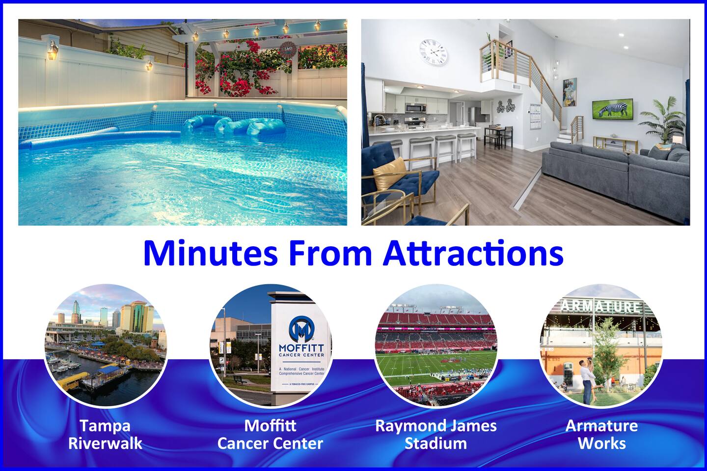 🌟 Follow us @FurnishedStaysTampa🌟 🌟 Check out IG for more photos and 🎥 videos: @FurnishedStaysTampa ✨ "Impeccably clean, perfectly located, and stocked with everything you could need!" Upon arrival, you'll be greeted by a seashell paved driveway and well-manicured yard that sets the tone for this amazing space. Amenities and services you’ll love: 🎗️ Luggage storage available 🎗️ During check-in, get Damage insurance to avoid a security deposit. 🎗️ Special rates start at 7+ nights 📅 Monthly stays OK ☞ One-night stays; see restrictions in house rules ☞ Fully stocked and equipped 🐈 Pet friendly ☞ Fully stocked and equipped 🔑 Key-less entry for seamless check-ins 📺 Smart TVs w/ Netflix in all rooms 🏊♀️ Pool + pool floats for fun-filled days 🍳Outdoor cooking, frying 🔥BBQ gas grill + picnic table 🍲Patio table + chairs for dining ☞ Courtyard w/beautiful landscaping ☞ Covered garden patio w/lighting ☞ Private fenced backyard ☕Drip coffee maker for the perfect brew 🧺 Washer/Dryer (free + in unit) 🥤 Blender for smoothies or cocktails ☞ Lightning-fast Wi-Fi – 406 Mbps ☞ Dedicated workspace ☞ Central AC/Heat + utilities ☞ Free parking for 2 cars ☞ Extra parking for 4 extra cars - fee applies ☞ Max of 6 cars allowed ☞ Book instantly online 24/7 ☞ One-night stays; see restrictions in house rules Family-friendly perks: 👶 Pack 'n Play, high chair, children’s dinnerware 🎲 Board games, cards, DVD player + movies for little ones 🧒 Lowry Park Zoo 🧒 Museum of Science & Industry (MOSI) Explore nearby attractions: ✰ 4 mins → Lowry Park Zoo ✰ 10 mins → Raymond James Stadium ✰ 10 mins → Steinbrenner Field ✰ 12 mins → Tampa Riverwalk ✰ 12 mins → Armature Works ✰ 14 mins → Straz Center for the Performing Arts ✰ 15 mins → Moffitt Cancer Center ✰ 16 mins → Ybor City ✰ 17 mins → Busch Gardens ✰ 17 mins → Amalie Arena ✰ 17 mins → Tampa International Airport ✰ 18 mins → University of South Florida (USF) ✰ 18 mins → Museum of Science & Industry (MOSI) ✰ 18 mins → The Florida Aquarium ✰ 19 mins → Pirate Yellow Water Taxi ✰ 19 mins → Sparkman Wharf (Channelside Bay Plaza) ✰ 19 mins → University of Tampa (UT) ✰ 19 mins → Seminole Hard Rock Hotel & Casino ✰ 20 mins → Hyde Park Village ✰ 20 mins → Port Tampa Bay Cruise Terminal ✰ 20 mins → Florida State Fairgrounds ✰ 20 mins → George M. Steinbrenner Field ✰ 20 mins → Raymond James Stadium ✰ 21 mins → Yuengling Center ✰ 27 mins → The Shops at Wiregrass ✰ 27 mins → Tampa Premium Outlet ✰ 31 mins → Epperson Lagoon ✰ 35 mins → Clearwater and St. Pete beaches ✰ 35 mins → St. Pete Pier ✰ 40 mins → Snowcat Ridge Theme Park ✰ 40 mins → TreeHoppers Aerial Adventure Park ✰ 90 mins → Disney World, Orlando FL What makes us special: 🏡 well-appointed home with local artwork 🏡 Loft-style home w/TONS of natural light, bright and cheerful 🏡 Impressive high ceilings w/ recessed lighting 🏡 View of pool from master bedroom 🌟 Luxury touches: Mellanni Hotel Luxury sheets, comfy beds, Matelassé coverlets 🌟 Room-darkening curtains 🌟 Ceiling fans with dimmer lights, space heater 🌟 walk-in closets, hard surface floors 🌟 Bathroom essentials Guest Love: 🫶 As a token of our appreciation for reading our house rules and your stay with us: 🫶 Online travel site bookings receive ONE gift card. 🫶 Direct bookings receive TWO gift cards. 🫶 Ask us about the gift cards. 🎗️ Check out our guidebook filled with our favorite local spots. Bed Configuration (10 people): ☞ Master Bedroom – KING, sleeps 2 ☞ Bedroom 2 – (2) Twins, sleeps 2 - (1 per bed) ☞ Bedroom 3 – (2) Fulls, sleeps 4 - (2 per bed) ☞ Living Room – 1 Full, pull-out sleeper sofa, sleeps 2 + one small person 🎗️UPGRADES: ☞ Extra beds for a fee ☞ (1) Twin *floor* mattresses ☞ (2) Twin guest beds w/pillow & linen ☞ Send written request to us 💖 Add us to your wishlist! Just click the ❤ in the upper-right corner and start planning your perfect stay. We want you! BOOK NOW Tell us what we can do to be your host.
