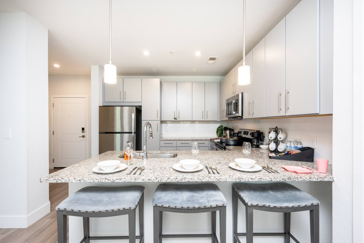 ✨ "...we loved the resort style amenities..." 2BR/2BA resort style apartment home walkable to dining and nightlife. ☞ Master suite w/ king + ensuite ☞ Olympic pool, hot tub, gym, courtyard ★ “Will stay again…looked just like the photos..” ☞ Fast Wi-Fi ☞ Dedicated workspace ☞ Pool views from all windows ☞ Free parking ☞ Pet Friendly + pet spa! ☞ Starbucks in parking ☞ monthly rates ✰ 5 mins → Moffitt Cancer Center ✰ 6 mins → Advent Health Hospital